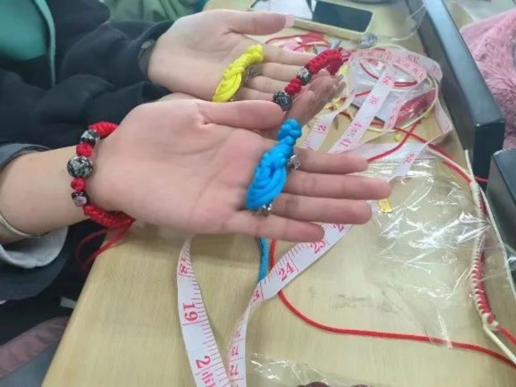 在学习过程中,周老师不厌其烦地示范,并关注每位同学的学习情况,给出适时的指导。同学们也在老师的带领下,做出了许多漂亮的饰品,并能够使用基本的技法创作出属于自己的中国结。