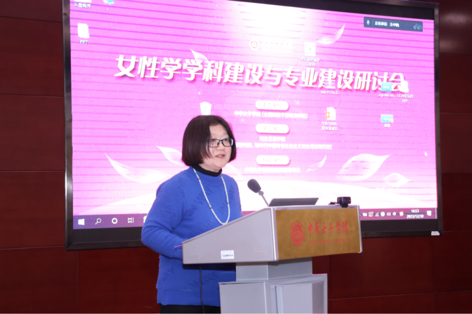 主旨发言环节,由中华女子学院妇女发展学院党总支书记丁新娅主持。北京大学魏国英教授、中国高等教育学会教育评估分会常务理事洪艺敏教授、中华女子学院女性学系韩贺南教授、中华女子学院妇女发展学院魏开琼教授先后发言。